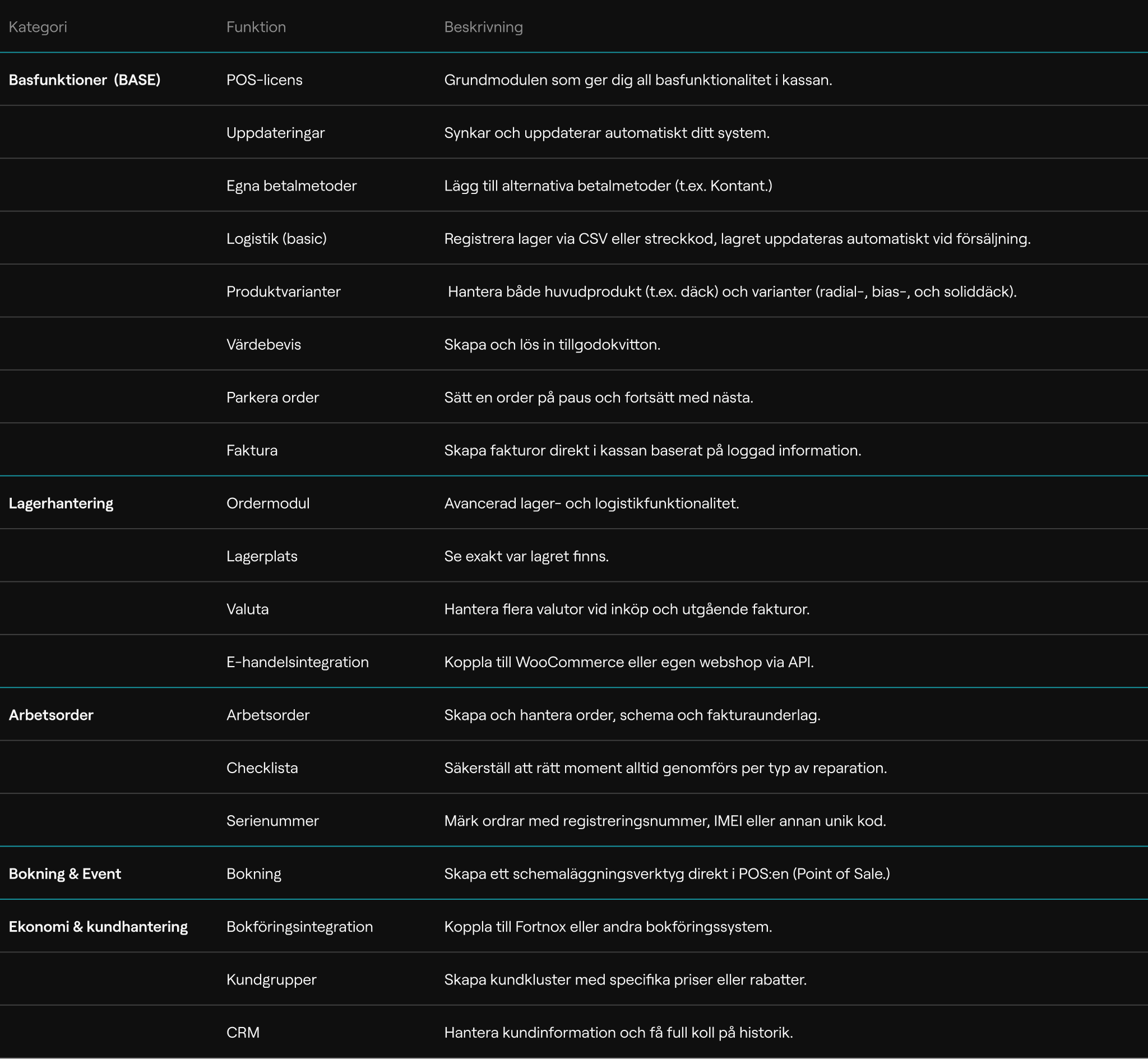 Här hittar du mer ingående information gällande moduler och funktioner som är relevanta för just verkstäder.